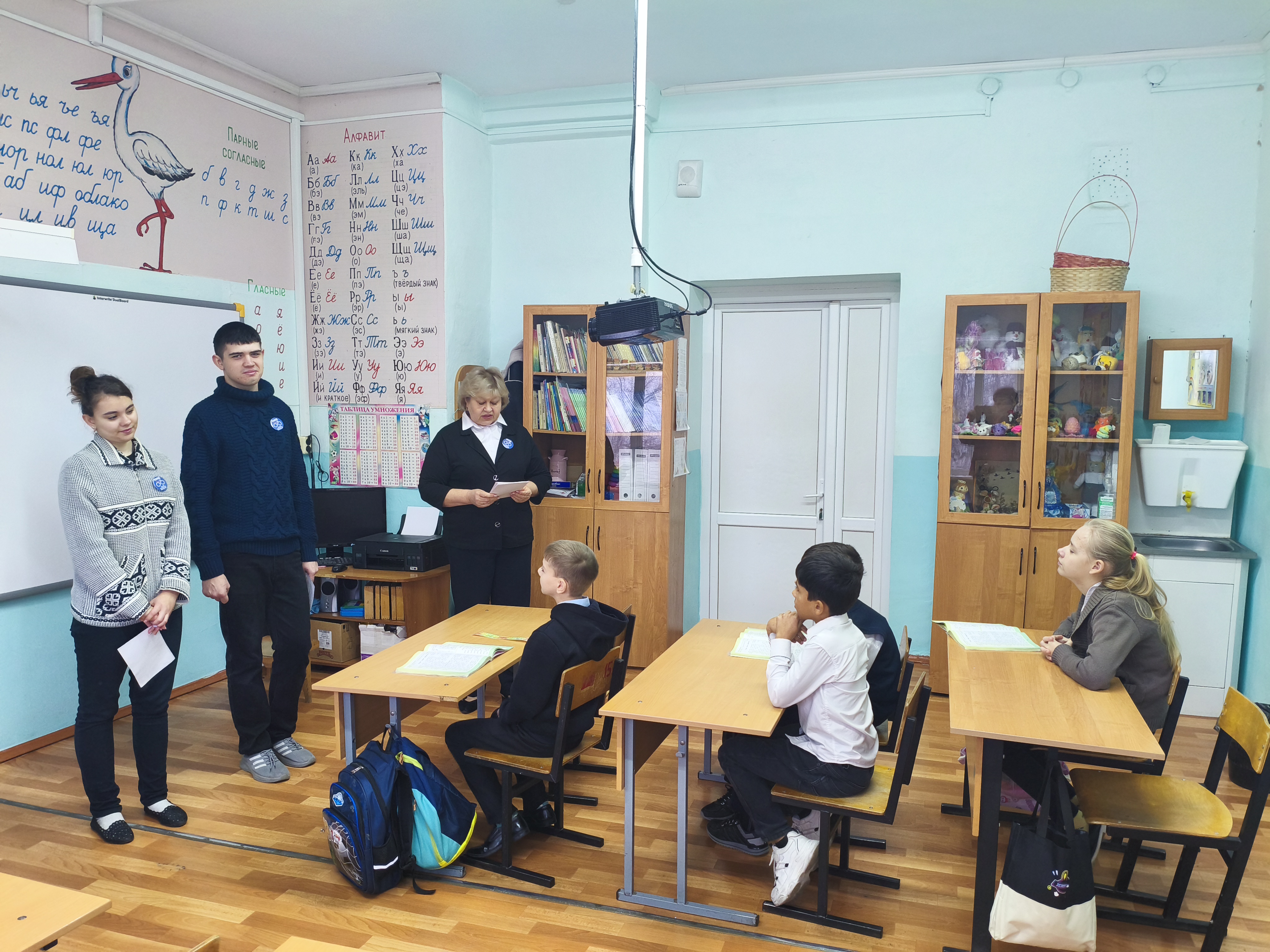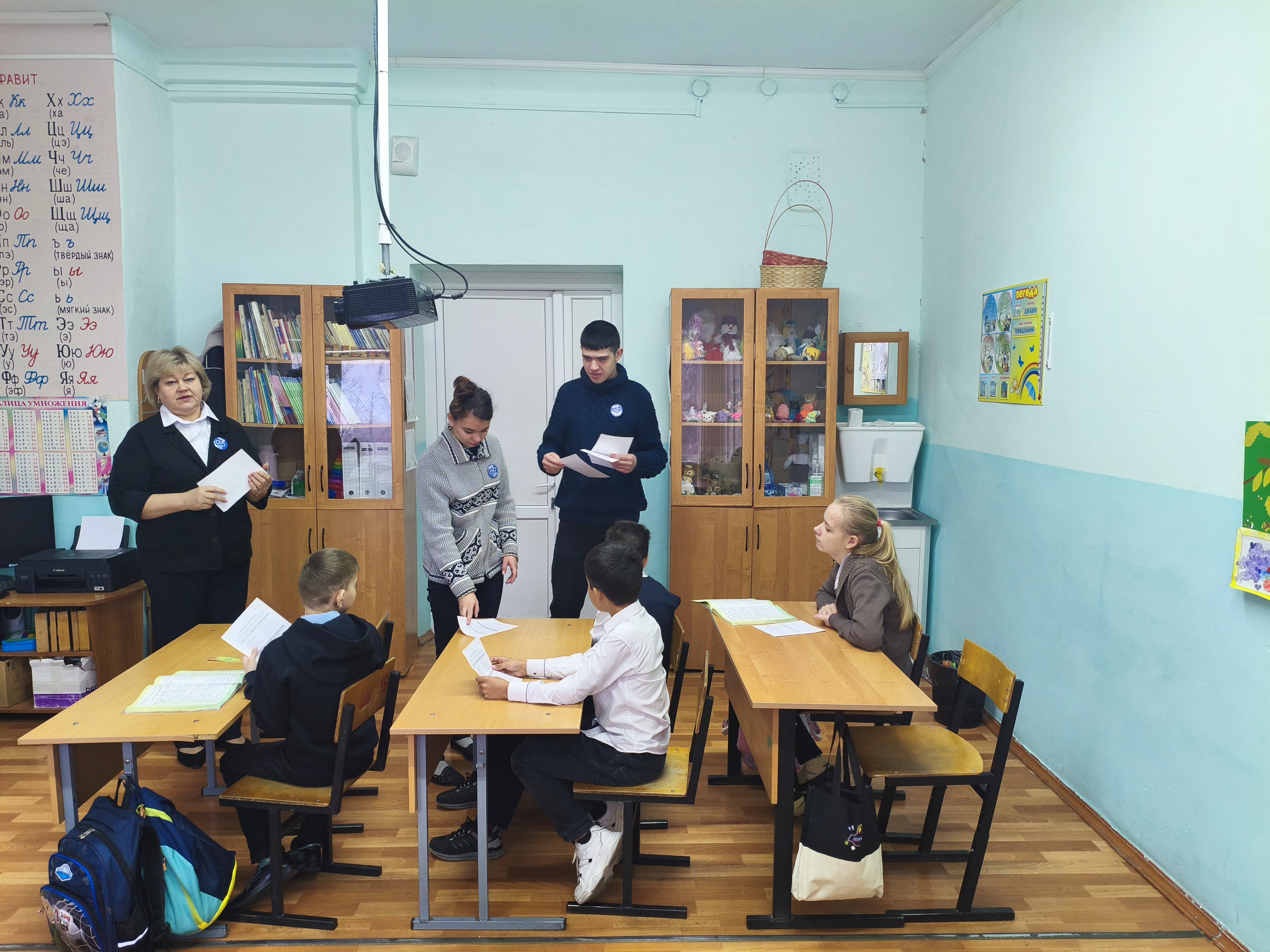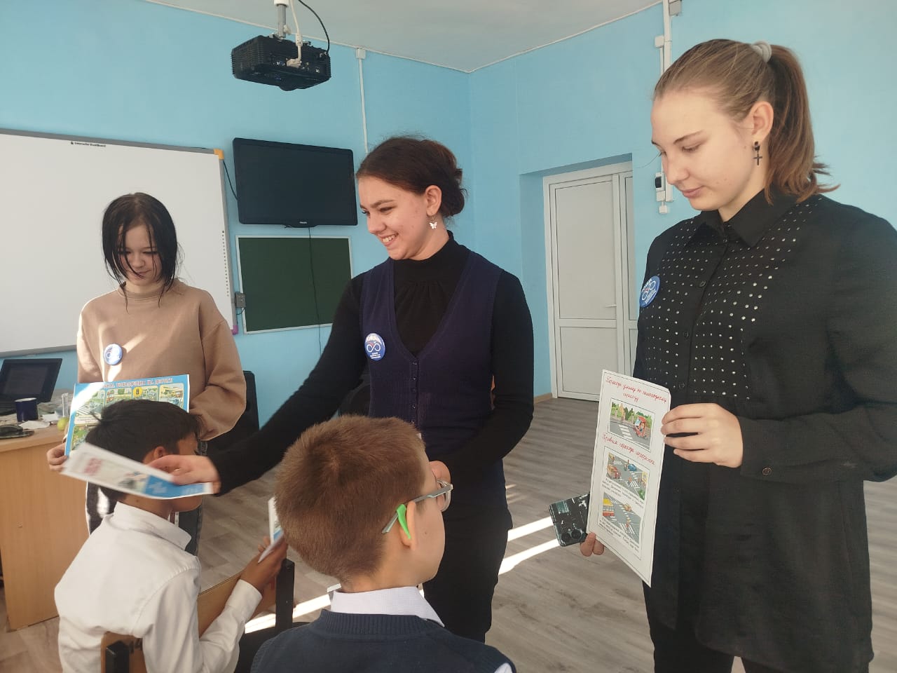 Активисты отряда ЮИД «Светофорик» ознакомили обучающихся начальных классов с правилами поведения на дороге в осенне-зимний период, беседа сопровождалась раздачей памяток «Я-пешеход».