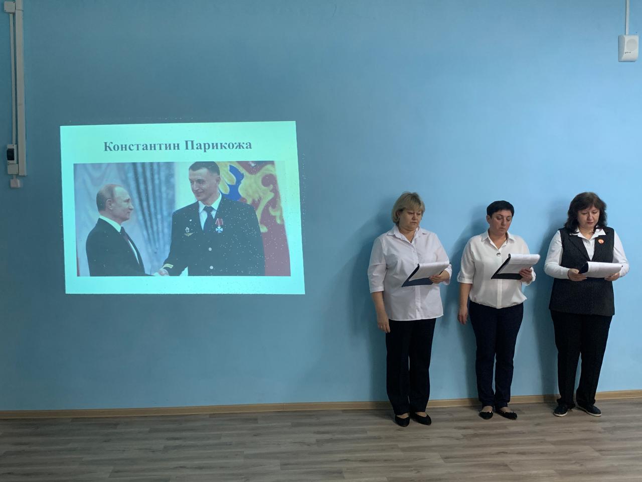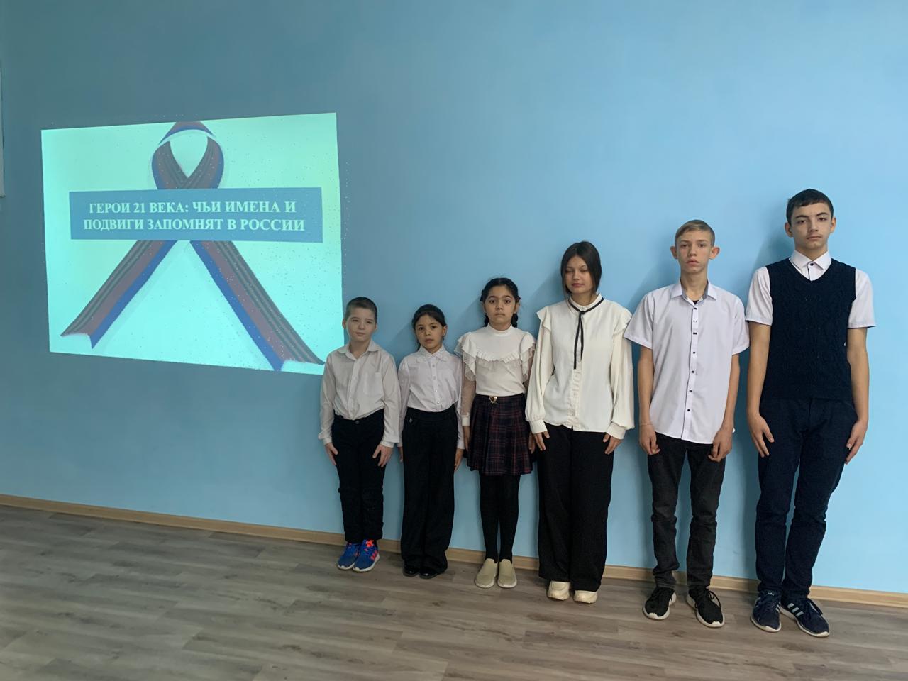 В ГКОУ «Урюпинская школа» прошла линейка «Герои 21 века: чьи имена и подвиги запомнят в России», подготовленная советником директора по воспитанию Локтионовой Н.Л. совместно со старшим воспитателем Сафоновой Л.Л., педагогом-организатором Черновой О.А. и активом обучающихся школы. Обучающиеся вспомнили имена и подвиги великих полководцев прошлого и знали о героях нашего времени. Почтили память Героев, погибших за правое дело нашей Великой Родины минутой молчания. На линейке звучали стихи о России и ее Героях.