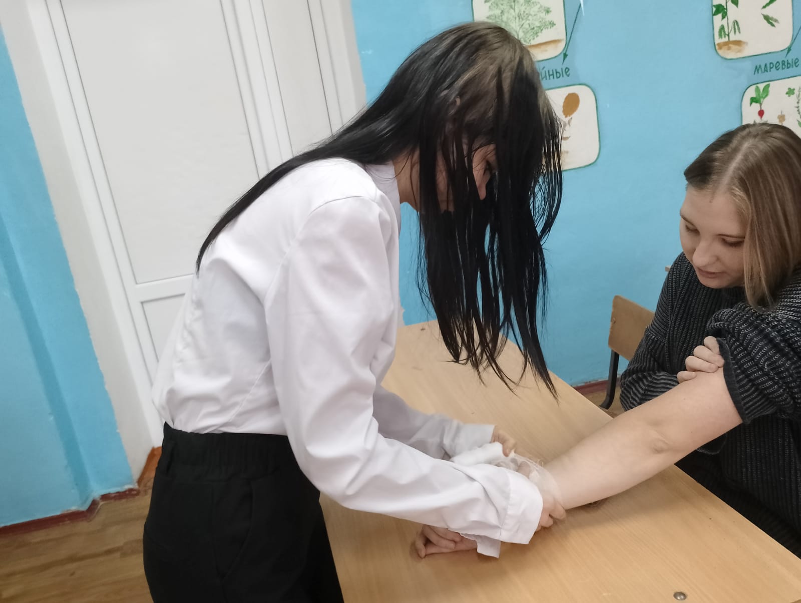 Учитель допобразования Пименова Н.И. провела урок «Оказание первой медицинской помощи»». Обучающиеся познакомились с понятиями и основами оказания первой помощи. К сожалению, никто не застрахован от несчастных случаев. Важно, чтобы каждый человек, в том числе и школьник, знал основные правила оказания первой помощи. Для детей знание первой помощи - это не просто навык, это способность спасти жизнь. Учить детей оказывать первую помощь важно не только для их безопасности, но и для благополучия всего общества. Это помогает формировать ответственное отношение к себе и окружающим, учит чувствовать себя увереннее в критических ситуациях. Умение оказывать первую помощь - это ценный навык, который может сделать мир безопаснее для всех. Обучающиеся активно задавали вопросы и узнали: - о 8 состояниях пострадавшего, когда незамедлительно нужно оказать первую помощь; - перечислили возможные опасности, которые могут навредить оказывающему первую помощь; - вспомнили алгоритм вызова скорой медицинской помощи и многое другое... Простые действия могут сохранить человеку здоровье, а иногда и жизнь!