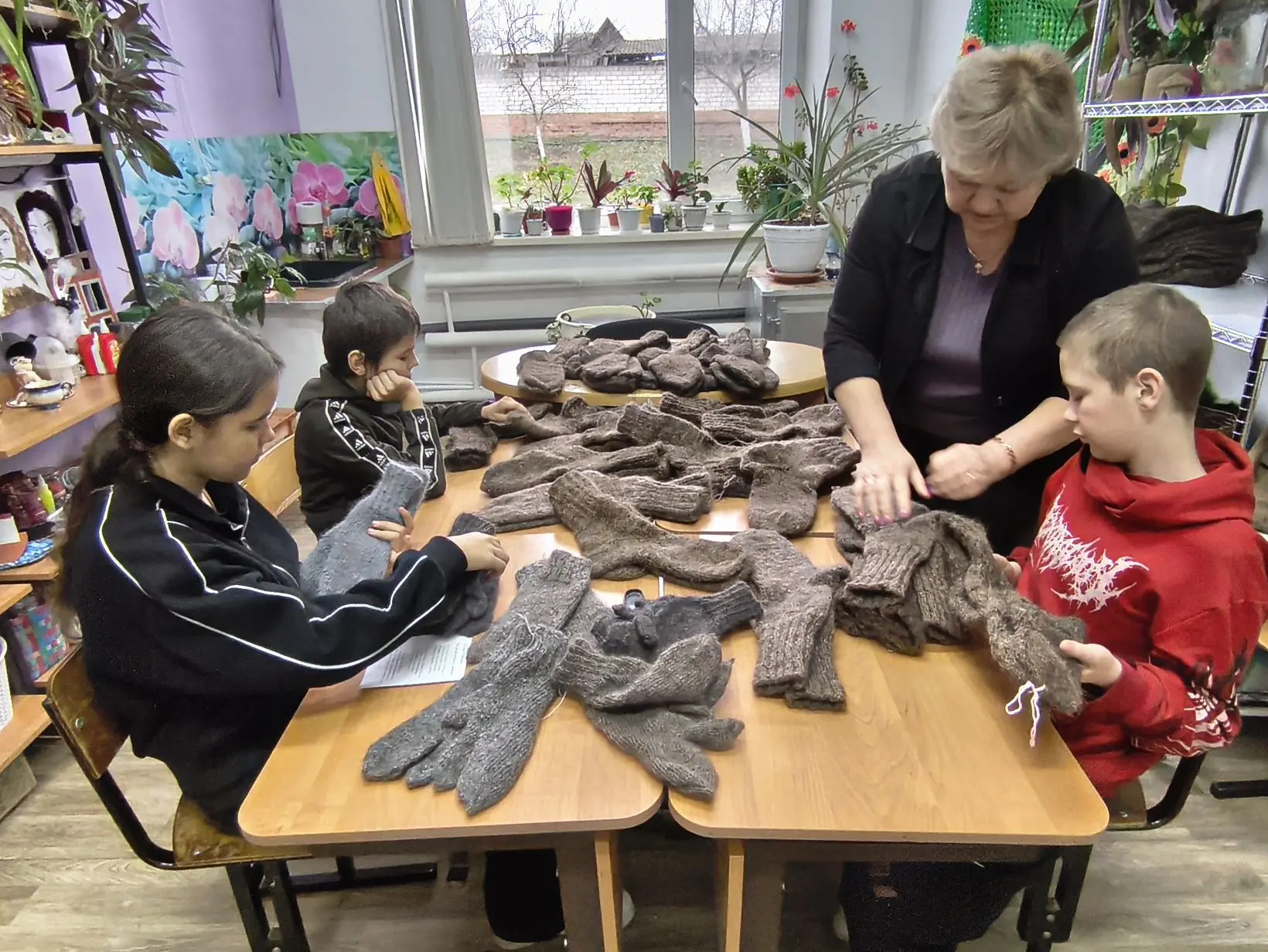 Проект «Вяжем для СВОих» реализуется в нашей школе. Обучающиеся вместе с педагогами вяжут теплые носки и варежки для участников спецоперации.